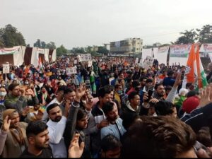 देहरादून, (गढ़वाल का विकास न्यूज)। “रोजगार दो वरना गद्दी छोड़ दो तथा किसानों पर अत्याचार बंद करो” जैसे नारों के बीच युवा कांग्रेस कार्यकर्ताओं व दिग्गज कांग्रेस जनों का हुजूम सोमवार को राजधानी की सड़कों पर उतर गया। सरकार के खिलाफ कांग्रेसियों का हुजूम नारेबाजी के बीच रिस्पना पुल के पास पहुंचा, वहां पहले से मौजूद पुलिस कर्मियों ने बेरेकेडिंग लगाकर प्रदर्शनकारियों को आगे बढ़ने से रोक दिया। आगे बढ़ने से रोके जाने पर पुलिस व प्रदर्शनकारियों के बीच न केवल तीखी नोंक-झोंक हुई, अपितु धक्का-मुक्की भी हुई। इस दोरान कई कार्यकर्ता बेरेकेडिंग के ऊपर तक चढ़ गये। पुलिस ने सभी को नीचे उतारा। बाद में प्रदर्शनकारी वहीं धरने पर बैठ गये।