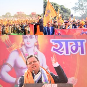 मुख्यमंत्री ने कहा कि 22 जनवरी को आयोध्या में होने वाले भगवान श्रीराम की मूर्ति की प्राण प्रतिष्ठा के हम सब साक्षी बनेंगे। उन्होंने कहा प्रधानमंत्री नरेंद्र मोदी के नेतृत्व में राम मंदिर बनाए जाने का मार्ग प्रशस्त हुआ है। आज उनके नेतृत्व में हमारा देश निरंतर प्रगति के पथ पर अग्रसर है। उन्होंने कहा देवभूमि उत्तराखंड से भगवान श्री राम का भी विशेष नाता है। देवप्रयाग में भगवान श्री राम को समर्पित रघुनाथ मंदिर एवं बागेश्वर जनपद में निर्मल बहती सरयू नदी है। मां सरयू का उद्गम स्थल हमारे उत्तराखंड में है एवं सरयू किनारे ही अयोध्या धाम में श्री राम विराजमान हैं।