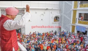 19 मार्च, गढ़वाल का विकास डॉट कॉम, देहरादून। श्री गुरु राम राय जी महाराज व श्रीमहंत देवेन्द्र दास जी महाराज के जयकारों के साथ 90 फीट ऊंचे नए ध्वजदण्ड (नए श्री झण्डे जी) को शनिवार को श्री दरबार साहिब लाया गया। इस पावन बेला का साक्षी बनने के लिए देा विदेा से हज़ारों की संख्या में संगत शुक्रवार देर शाम तक श्री दरबार साहिब, देहरादून पहुंच गई थी। शनिवार सुबह 6ः30 बजे संगतों के श्री गुरु राम राय पब्लिक स्कूल बाॅम्बे बाग पहुंचने का क्रम शुरू हुआ। वहां पर श्रीमहंत देवेन्द्र दास जी महाराज ने संगत को र्दान दिए व आशीर्वाद दिया। श्रीमहंत देवेन्द्र दास जी महाराज की अगुवाई में संगतों ने अरदास पढ़ी व 8ः00 बजे संगतों ने नए ध्वजदण्ड को अपने कंधों पर उठाकर श्री दरबार साहिब के लिए प्रस्थान किया। श्री दरबार साहिब परिसर में पहुंचते ही संगत ने ढोल नगाड़ों की थाप पर जमकर नृत्य किया।