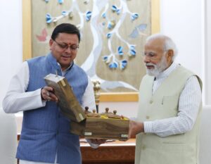देहरादून/नई दिल्ली 01 मई, गढ़वाल का विकास डॉट कॉम। मुख्यमंत्री पुष्कर सिंह धामी ने प्रधानमंत्री नरेन्द्र मोदी से नई दिल्ली में शिष्टाचार भेंट कर उत्तराखंड के विकास में उनके मार्गदर्शन और सहयोग के लिए आभार व्यक्त किया। मुख्यमंत्री ने प्रधानमंत्री जी को श्री केदारनाथ और श्री बद्रीनाथ धाम का प्रसाद, गंगा तुलसी, गंगोत्री यमुनोत्री, अलकनंदा और मंदाकिनी का गंगाजल के साथ ही रुद्राक्ष की माला भी भेंट की।