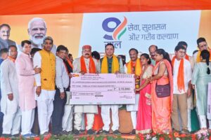 कार्यक्रम को सम्बोधित करते हुये मुख्यमंत्री ने कहा कि हमारी सरकार गरीबों को समर्पित है। गरीब की आवश्यकताओं को भली भांति समझती है इसलिए हमारी सरकार योजनाओं को जन जन तक पहुंचाने के लिए दिन-रात काम कर रही है। इसी का परिणाम है जो आज इतनी बड़ी संख्या में आप सभी यहां एकत्रित हुए हैं। उन्होंने कहा कि देश में पहले जहां शोषितों और वंचितों का तुष्टिकरण होता था, वहीं अब शोषितों और वंचितों का सशक्तिकरण हो रहा है। मुख्यमंत्री ने कहा कि प्रधानमंत्री श्री नरेन्द्र मोदी के कुशल नेतृत्व में पिछले नौ वर्षों के दौरान हुए विकास कार्यों को सभी मापदंडों पर तोलकर हम कह सकते हैं, हमारे देश ने इन 9 वर्षों में हर क्षेत्र में अभूतपूर्व प्रगति की है। आज सारी दुनिया हमारे देश और हमारे यशस्वी प्रधानमंत्री जी का लोहा मान रही है। वर्ष 2014 में देश की जनता ने आदरणीय मोदी जी पर अपना भरोसा जताया था, और आज जनता के इसी भरोसे ने 2014 से 2023 के नौ वर्षों की अवधि में देश की ’’समृद्धि रूपी’’ रेल गाड़ी को ’’विकास रूपी पटरियों’’ पर तेजी से दौड़ाने का कार्य किया है। उन्होंने विश्वास व्यक्त किया कि प्रधानमंत्री जी के नेतृत्व में 2024 से 2029 का समय भारत को पुनः विश्व गुरु बनाने के मार्ग को प्रशस्त करेगा।