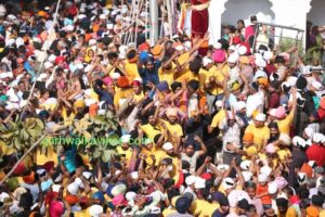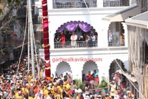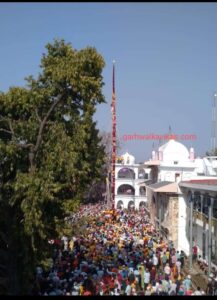 22 मार्च, गढ़वाल का विकास डॉट कॉम, देहरादून।खुशियां नाल मनाईये जन्मदिन सद्गुरु दा…….. श्री गुरु राम राय जी ने रौंणका देहरादून विच लाइंयां…… देखो देखों गुरां दा देखों झण्डा चढ़या….. गुरुभक्ति के गीतों व श्री गुरु राम राय जी महाराज के जयकारों के साथ मंगलवार को श्री झण्डा साहिब का आरोहण किया गया। आस्था के महाकुंभ का साक्षी बनने के लिए श्री दरबार साहिब में मंगलवार को श्रद्धालुओं का जनसैलाब उमड़ पड़ा। लाखों संगतों व दूनवासी श्री झण्डे जी के सम्मुख श्रद्धा के साथ शीश नवाए व हाथ जोड़े खड़े रहे। हर कोई श्री झण्डा साहिब के समक्ष मत्था टेकने और श्री गुरु राम राय जी महाराज के दर्शन को बेताब रहा। श्री दरबार साहिब परिसर व आसपास के क्षेत्रों में तिल रखने भर की भी जगह नहीं थी। जैसे-जैसे श्री झण्डे जी पर गिलाफ के आवरण चढ़ाने का क्रम बढ़ता जाता, संगतों व दूनवासियों का उत्साह भी पराकाष्ठा तक पहुंचता जाता। दर्शनी गिलाफ के चढ़ते ही व श्री झण्डे जी के आरोहण की प्रक्रिया प्रारम्भ होते ही श्री गुरु राम राय महाराज जी के जयकारों की ध्वनि तेज हो उठी। मंगलवार शाम 3ः10 मिनट पर जैसे ही श्री दरबार साहिब देहरादून के सज्जादानशीन श्रीमहंत देवेन्द्र दास जी महाराज ने आरोहण की प्रक्रिया शुरू करने का संदेश दिया, वैसे ही पूरी द्रोणनगरी श्री गुरु राम राय जी महाराज के जयकारों से गूंज उठी। 3 बजकर 22 मिनट पर श्री झण्डे जी का आरोहण पूर्णं हुआ। संगतों व दूनवासियों ने श्री गुरु राम राय जी महाराज के जयकारे लगाए व ढोल की थाप पर जमकर नृत्य किया। इसी के साथ देहरादून के ऐतिहासिक एवम् सांस्कृतिक विरासत श्री झण्डे जी मेले का विधिवत शुभारंभ हो गया।