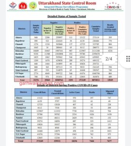 17 जनवरी, गढ़वाल का विकास डॉट कॉम, देहरादून। उत्तराखंड में कोरोना के मामलें थमने का नाम नहीं ले रहे है। स्वास्थ विभाग द्वारा आज जारी हेल्थ बुलेटिन में कोरोना के 3295 नए मामले सामने आए है, जबकि आज कोरोना से 4 मरीजो की मौत हुई है। बुलेटिन के मुताबिक आज जहां 2067 मरीजों ने कोरोना को मात दी, वहीं प्रदेश में कोरोना के एक्टिव मामलों की संख्या बढ़कर 18196 तक पहुँच गयी है।