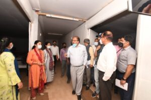 इसके बाद मुख्य सचिव दूधाधारी स्थित बाबा बर्फानी अस्पताल में बनी कोविड यूनिट का निरीक्षण करने पहुंचे। उन्होंने मेलाधिकारी स्वास्थ्य डाॅ0 अर्जुन सिंह सेंगर से कोविड यूनिट की सुविधाओं, डाक्टरों की तैनाती और अब तक कितने डाक्टरों ने ज्वाइन किया है, इसकी जानकारी ली। मुख्य सचिव ने कोविड परीक्षण केंद्र के काउंटर, वार्ड का निरीक्षण किया। वार्ड में बड़ा एग्जाॅस्ट फैन लगवाने के निर्देश दिए। उन्होंने आईसीयू, जनरल वार्ड, शौचालय का निरीक्षण कर आवश्यक दिशा निर्देश दिए। उन्होंने कोविड यूनिट में दो आटोमेटिक हाइड्रोलिक चेयर लगवाने के निर्देश अधिकारियों को दिए। उन्होंने अस्पताल में बनाई जा रही व्यवस्थाओं की प्रशंसा की।