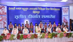 देहरादून,(गढ़वाल का विकास न्यूज)। मुख्यमंत्री त्रिवेन्द्र सिंह रावत ने पटेलनगर स्थित हेमवती नन्दन बहुगुणा उत्तराखण्ड चिकित्सा शिक्षा विश्वविद्यालय के तृतीय दीक्षांत समारोह में प्रतिभाग किया। इस अवसर पर मुख्यमंत्री ने छात्र-छात्राओं को उपाधियां प्रदान की। विश्वविद्यालय द्वारा सत्र 2019-20 के कुल 922 अभ्यर्थियों को उपाधियां प्रदान की गई। इस अवसर पर संजय गांधी पी.जी.आई.एम.एस लखनऊ के न्यूरोलॉजी विभाग के विभागाध्यक्ष (पद्मश्री) प्रो. सुनील प्रधान, एम्स जोधपुर के निदेशक प्रो. संजीव मिश्रा, भूतपूर्व कुलपति हेमवती नन्दन बहुगुणा, उत्तराखण्ड चिकित्सा शिक्षा विश्वविद्यालय प्रो. सौदान सिंह एवं एम्स नई दिल्ली के चिकित्सा अधीक्षक डॉ. डी.के. शर्मा को ‘‘डी एस सी’’ की मानद उपाधि दी गई। चिकित्सा क्षेत्र में श्रेष्ठ शोध पत्र के लिए डॉ. प्रियंका चौरसिया, डॉ. स्मृति, डॉ. प्रेरणा सिंह एवं डॉ. दीपिका लोहानी को प्रो. (डॉ.) एन.सी.पंत पुरस्कार दिया गया। इस अवसर पर मुख्यमंत्री ने हेमवती नन्दन बहुगुणा उत्तराखण्ड चिकित्सा शिक्षा विश्वविद्यालय के कुलपति प्रो. हेम चन्द्र द्वारा लिखी गई पुस्तक ‘‘हेल्थ केयर डिलीवरी सिस्टम इन इंडिया’’ का विमोचन भी किया।