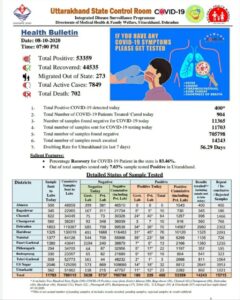 देहरादून, (गढ़वाल का विकास न्यूज)। उत्तराखंड में कोरोना के मामलों में लगातार इजाफा होता जा रहा हैं। स्वास्थ्य विभाग द्वारा आज जारी हेल्थ बुलेटिन में कोरोना के 400 नये मामले सामने आने के बाद प्रदेश में कोरोना मामलों की संख्या बढ़कर 53359 हो गयी हैं।